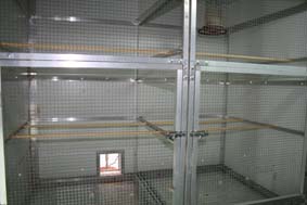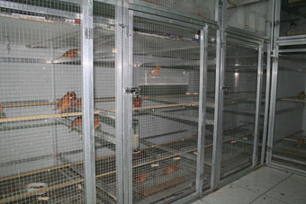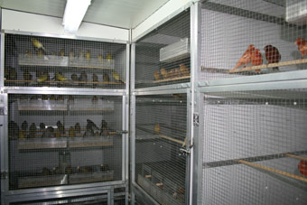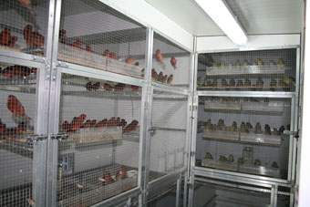 Naast een goede voeding staat natuurlijk een goede huisvesting. De vogels uit de zwartserie kunnen hun vleugels strekken in de buitenvoliere's met nachthok. De andere kleurslagen zijn gehuisvest in binnenvoliere's. Alle voliere's hebben gaasbodems. Dit heeft als voordeel dat de ontlasting buiten bereik van de vogels komt. Zeker in combinatie met het gemorste hardvoer, eivoer en badwater voorkomt het een hoop narigheid. Het kost je alleen wel wat meer voer. Alle voliere's zijn gemaakt van aluminium wat het schoonmaken vergemakkelijkt en bovendien geen onderhoud vraagt.